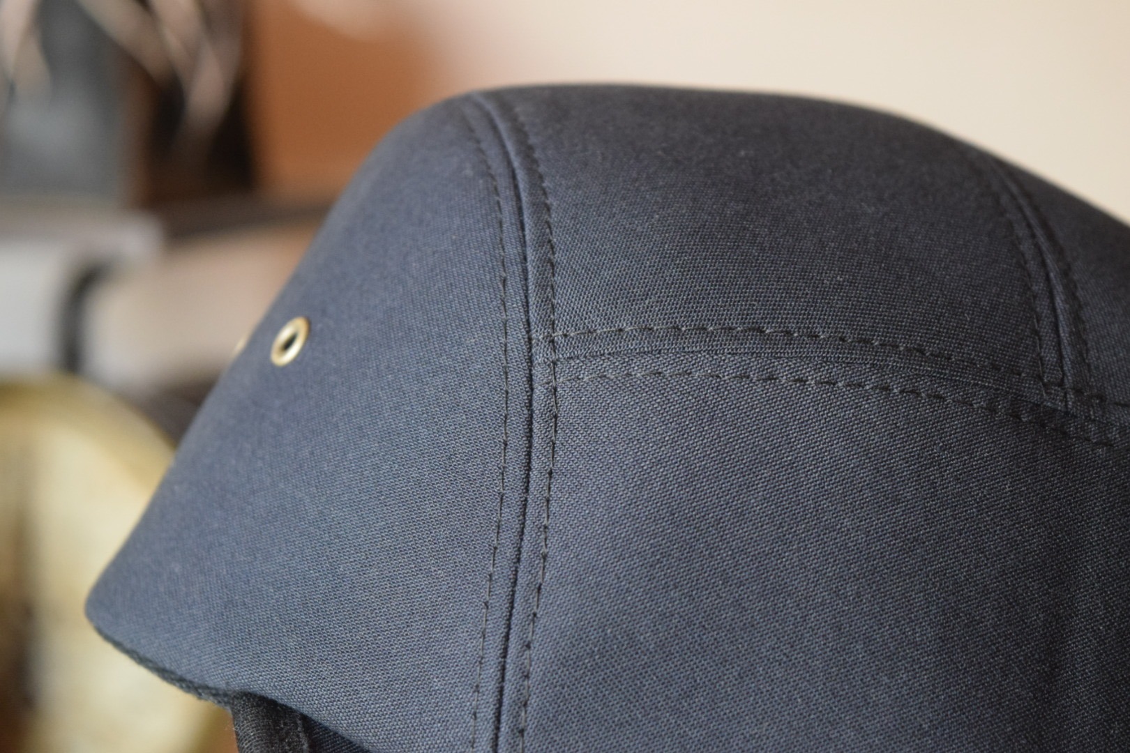 ツバ周りにはパイピングで極端なアクセント控えつつ存在感を持たせ