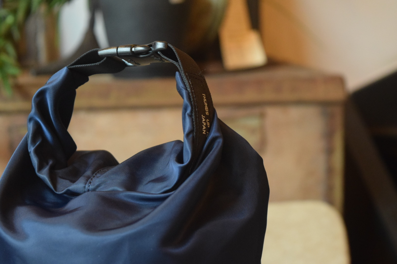 ものを入れるときは、口元をクルッとしてパチンとしたら程よい持ち手ができますのですごく持ち運びやすくなります。
